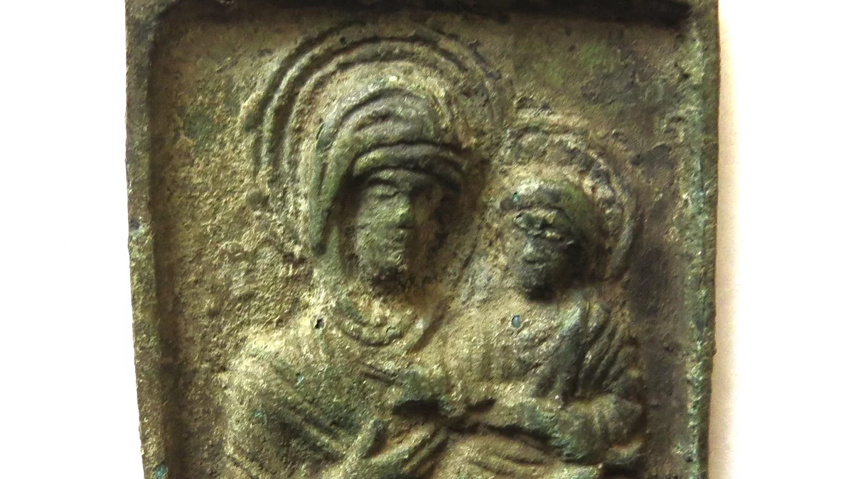 Ikona ta wpisuje się w tradycję ikonograficzną, która była szczególnie popularna w średniowieczu, zwłaszcza w obrządku grecko-bizantyńskim. W tym kontekście warto zwrócić uwagę, że na średniowiecznej Rusi, sąsiadującej z obszarem, na którym znaleziona została ikona, podobne metalowe miniaturowe ikony zaczęły pojawiać się już w XII wieku. Wiek XVI, a nawet późniejsze epoki, również dostarczają przykładów podobnych wyrobów, które powielały te same wzorce ikonograficzne. Ciekawym przypadkiem są enkolpiony, czyli krzyże napierśne, które w niezmienionej formie były produkowane od XII wieku aż do czasów wczesnonowożytnych. Wynikało to z tradycjonalizmu sztuki związanej z wschodnim chrześcijaństwem, gdzie ustalone wzorce ikonograficzne były powielane, a ich zmiana była postrzegana jako niewłaściwa.