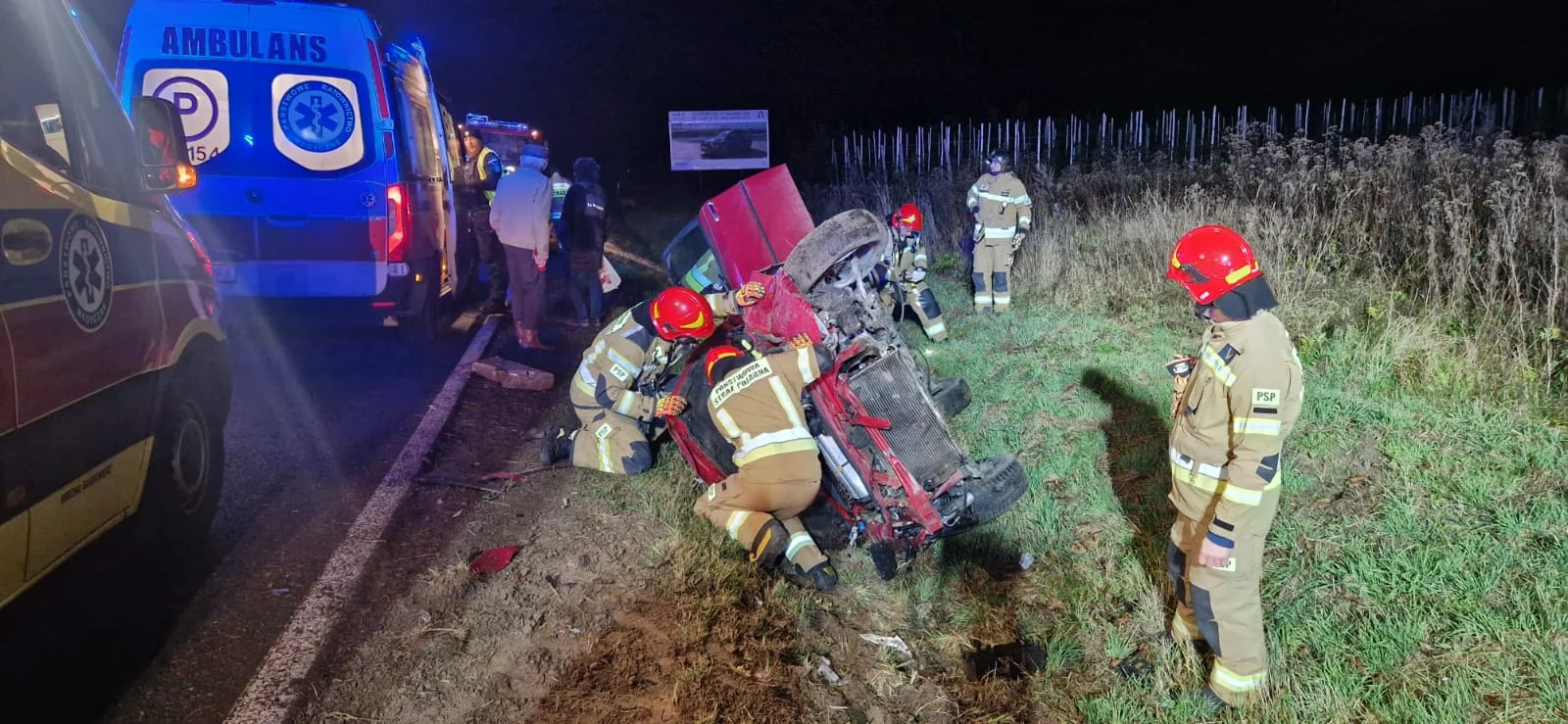 Pierwsze zdarzenie miało miejsce w Sośniczanach, gdzie doszło do dachowania samochodu osobowego. W wyniku wypadku jedna osoba została poszkodowana i potrzebowała pilnej pomocy medycznej. Na miejscu szybko pojawili się strażacy z Jednostki Ratowniczo-Gaśniczej w Sandomierzu, którzy zabezpieczyli teren i udzielili wsparcia poszkodowanemu do czasu przybycia zespołu ratownictwa medycznego.